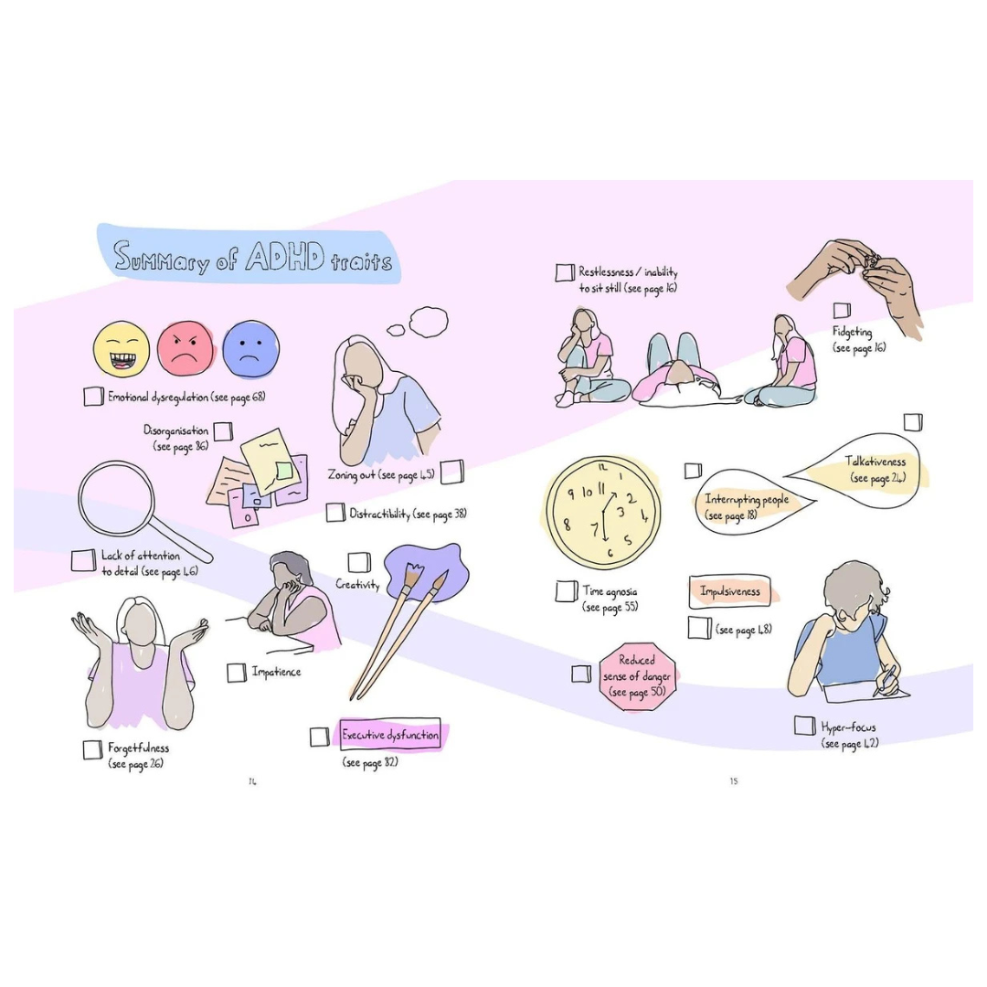 Using simple explanations and thoughtful illustrations, Chanelle explores how ADHD can affect focus, organisation, routines, emotions, and energy. Complex ideas are broken down into clear sections, making the information accessible for ADHDers, whānau, educators, and anyone wanting to learn more.